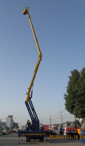 支腿橫向跨距 3.25m 上臂最大升角 70 下臂最大升角 140 ★采用國際領先的東風高檔底盤加裝五節折臂液壓舉升專用裝置 ★環保項到國家機動車第四階段排放標準(國IV) ★采用國產、進口換向閥及液壓油缸,換向平穩,操作靈活方便,液壓系統實現上下車互鎖,過載保護,油缸安全自鎖,系統設過載保護閥,油壓超過定值,自動卸載 ★轉臺、工作斗雙工位操作 ★臂架結構緊湊,機動性好,作業范圍大 ★支腿與工作臂互鎖,安全可靠,防止誤操作 ★H型支腿,跨距大,穩定性好,支腿即可獨立伸縮,又可聯動,裝有支腿報閃燈,用于作業時支腿示廓,發出光報警信號 ★工作斗自動調平,外置拉桿強制平衡 ●選裝電液比例調速的電子控制系統,無極調速,操作平穩/電控系統可選裝地面無線遙控操作系統