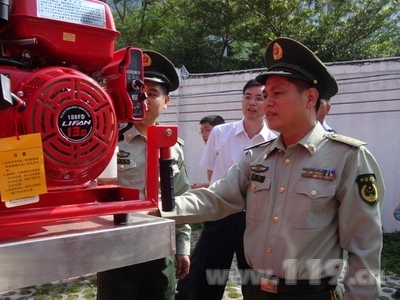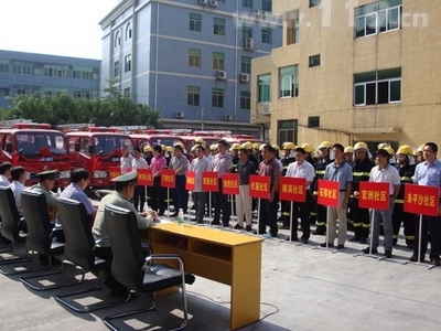 東莞市公安消防支隊黃懷政委在講話中代表支隊對長期關心和支持消防工作的望牛墩鎮委、鎮政府領導表示衷心的感謝,并致以親切的問候!黃政委指出,望牛墩鎮地處東莞西部,水域面積大,社區相對比較多,經濟還不是很發達。長期以來,村(居)火災都是影響地區火災形勢穩定的一個重要因素。目前,望牛墩鎮只有一個消防站,無法有效覆蓋離鎮中心遠的社區,只有建立和完善社區的滅火救援隊伍,才能滿足村滅火救援工作的需要,促進社區消防工作的發展。今天,望牛墩人民政府在這里隆重舉行簡易消防車發放儀式,目的就是要進一步強化的社區消防安全意識,完善和規范社區消防設施配備,提高社區抵御火災的能力,是一件惠及廣大人民群眾的大喜事大好事,同時也是望牛墩人民政府關心和支持消防工作的有力體現。簡易消防車的投入使用,能夠確保社區火災發生后得到快速撲救,能夠大大減少人民群眾經濟財產的損失。同時也標志著望牛墩鎮社區消防安全又邁上了一個新臺階,實現了社區多種形式消防隊伍建設的跨越式發展。希望望牛墩消防大隊和各兼職消防隊伍,能以這次裝備配備為契機,充分利用好新裝備,加大練兵力度,實現人與裝備的最佳組合,不辜負地方鎮委、鎮政府對我們的期望,為保衛地方經濟建設,促進社會發展作出更大的貢獻。