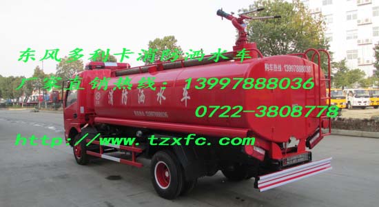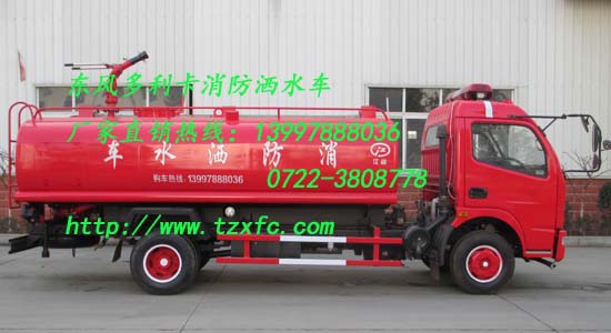 東風多利卡消防灑水車是一種簡易的消防車,其特點具有價格便宜,載液量大,同時具有消防車的功能和灑水車的兩用功能,泵房有3個門,里面安裝水帶固定架6具,2支水槍,罐體頂部安裝消防炮,及吸水管,駕駛室頂部安裝爆閃警燈。
