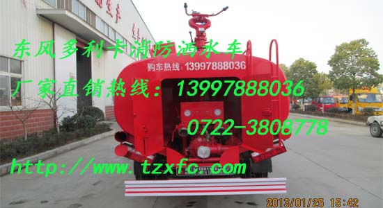 消防車廠家報道:河南商丘購買我公司東風145消防車和東風多利卡消防灑水車,客戶對我公司消防車產品十分滿意,對東風消防車贊口不絕。
