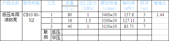 上海雄真消防泵CB20.10/40.80-XZ 中低壓車用消防泵參數詳細介紹: