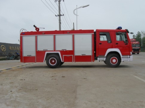豪沃單橋水泡干粉聯用消防車出廠照片