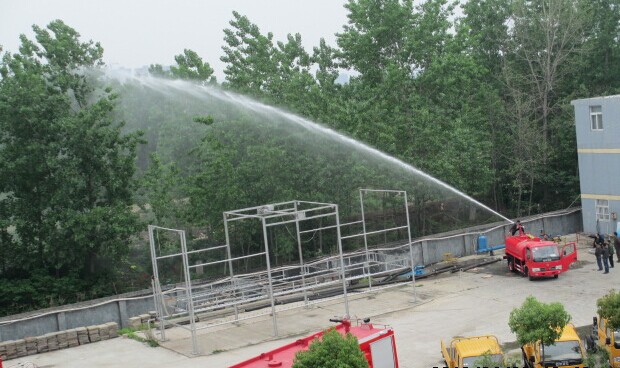 此車罐體容積為5-7噸,,裝備灑水泵、高壓槍,出水量為8L/s,射程為30米,不能攜帶消防器材,但后可設置工作平臺。
