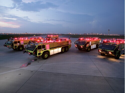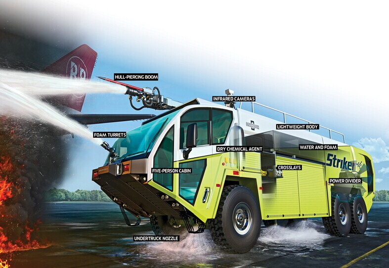 機(jī)場消防車的救援最重要的挑戰(zhàn)是反應(yīng)時間。熄滅航空燃料需要數(shù)千加侖的滅火泡沫,汽油燃燒的溫度如此之高(高達(dá)2,500°F),在乘客被高溫和濃煙吞噬之前,消防隊(duì)員只有三分鐘反應(yīng)時間。因此,機(jī)場消防車 (ARFF) ,必須平衡有效載荷重量與快速加速。自2001年出品第一款消防車以來,Oshkosh Striker已經(jīng)成為業(yè)界領(lǐng)先的飛機(jī)消防專用車。今天它被應(yīng)用在白宮、幾乎每一個空軍基地,以及200多個美國機(jī)場。2010年,Oshkosh Striker首次發(fā)布價格在$ 600,000到$ 800,000美元的車型,精簡了設(shè)計(jì)并加強(qiáng)操控性。