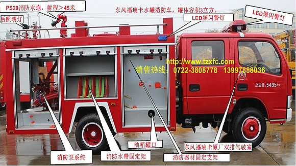 東風福瑞卡水罐消防車內部配置結構圖: