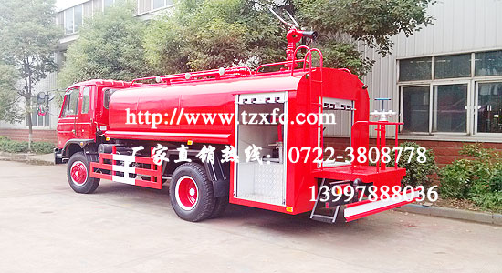 東風消防車罐體容積為8立方,全部零部件均和正規消防車配件一樣,也采用全功率夾心取力器,及全自動真空引水消防泵,配備消防炮及消防泵房,尾部安裝灑水平臺及灑水炮。