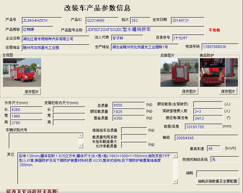 該泡沫消防車和水罐消防車產品公告: