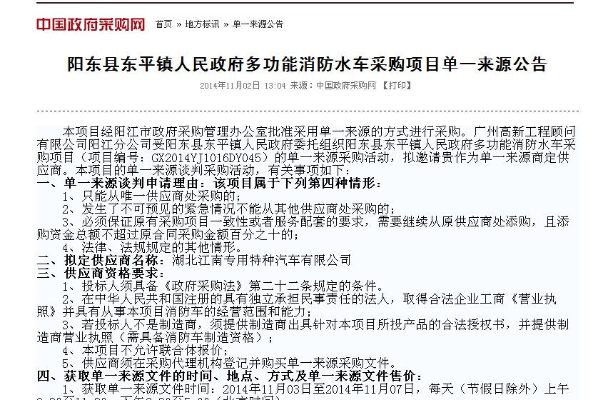 多功能消防水車招標公告: