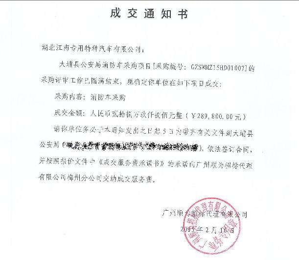 熱烈慶祝湖北江南專用特種汽車有限公司再次中標(biāo)大埔縣公安局消防車采購項(xiàng)目,成交公告網(wǎng)站:http://www.ccgp.gov.cn/cggg/dfgg/zbgg/201502/t20150210_5001293.htm