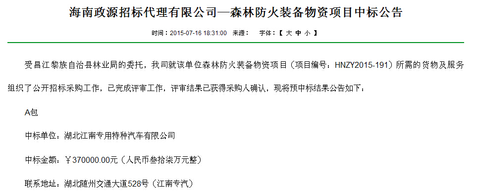 消防車中標網址:http://mof.hainan.gov.cn/czt/zwxx/zfcg/cjgg/201507/t20150716_1615765.html