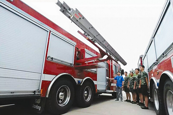 4輛“霸王龍”消防車漂洋過海,把“霸王龍”稱作頂級消防車一點也不夸張,它的垂直供水高度可達300米,垂直輸送泡沫的高度更是高達330米。山西省目前已經建成的建筑物中,高度最高的是位于太原市青年路的湖濱國際大酒店,它的高度為208米。這樣看來,即使是全省最高建筑,“霸王龍”也能輕松應對。該消防車在太原正式“上崗”。“霸王龍”消防車,是由美國大力公司生產的“壓縮空氣泡沫消防車”。這種消防車性能優越,產生泡沫的發泡倍數高,具有良好附著性、滲透性和覆蓋性,可以大大提高滅火效率。