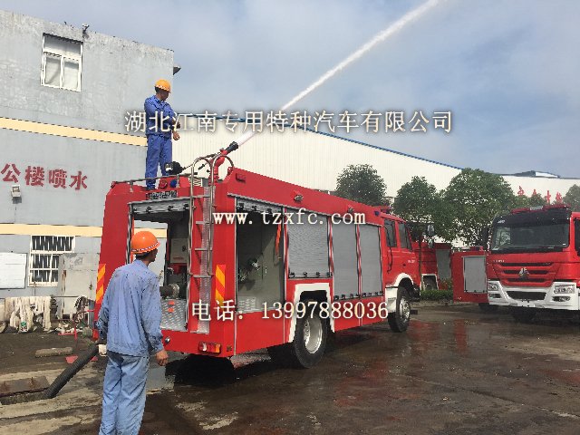 豪沃單橋泡沫消防車:該車罐體容積為水6噸,泡沫2噸,罐體采用優質碳鋼制作,采用CB10/60低壓消防水泵,射程可打60米,以下是該車的試車效果: