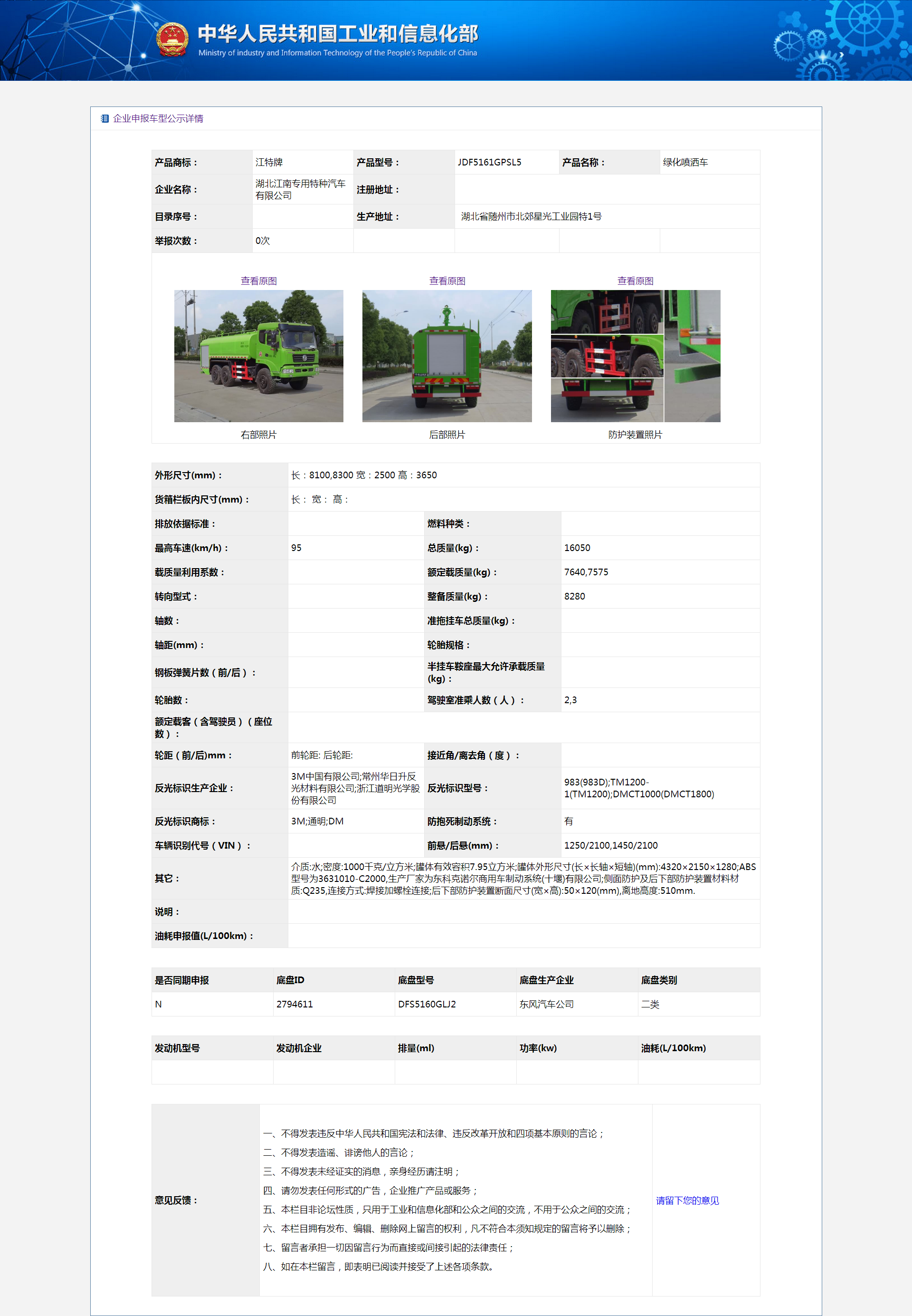 國五東風6驅森林越野消防車工信部公告截圖數據: