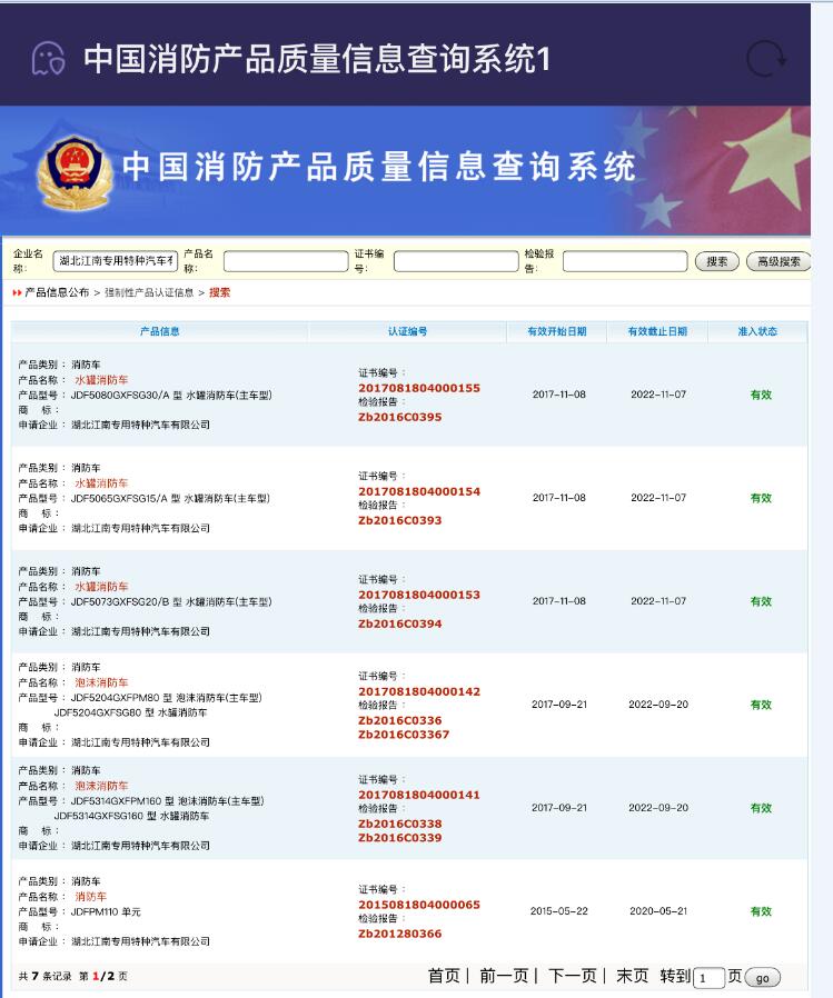 我公司研發(fā)的多款產(chǎn)品相繼通過了“公安部消防產(chǎn)品合格評定中心”CCCF認(rèn)證,目前3C認(rèn)證車型有5款,這份由國家最高權(quán)威機(jī)構(gòu)經(jīng)過嚴(yán)格檢測、審核后頒布的認(rèn)證證書,為我公司消防車的安全性、可靠性提供了最有力的證明。其他各款消防車均已申報(bào)3C,后期會陸續(xù)下發(fā),詳情請咨詢廠家銷售熱線:0722-3808778