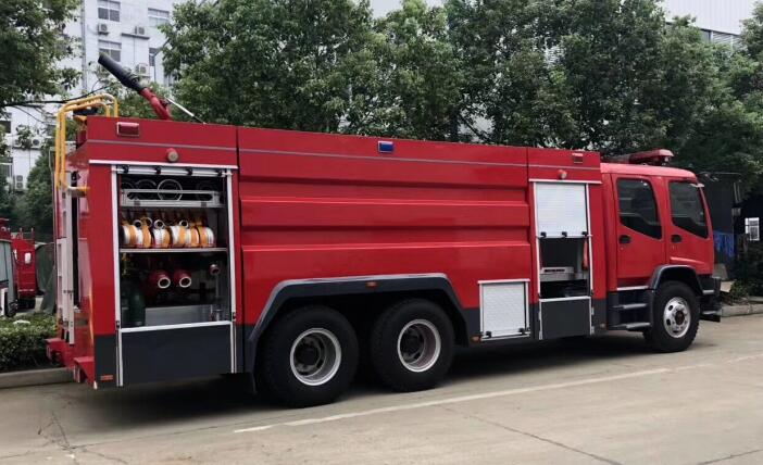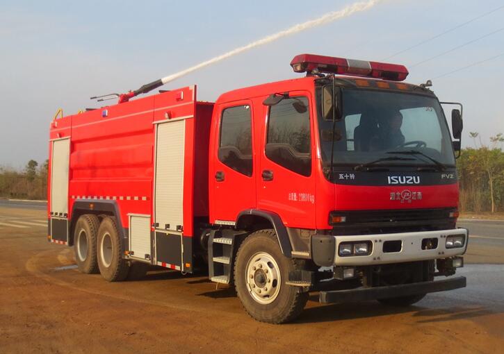 我公司生產的五十鈴泡沫消防車(12噸)消防車主要配置:采用慶鈴QL1250WPFZY底盤改裝而成。整車由消防員乘員室和車身兩大部分組成,乘員室為單排改雙排,可乘坐3+3人,該車為外露罐結構,車身前部為器材箱,中部為水罐,后部為泵房。載液罐體為優質碳鋼,與底盤采用彈性連接,載水8000kg(PM110)/10800kg(SG110),泡沫液量2800kg(PM160),裝備了上海雄真消防設備有限公司生產CB10/60-XZ型低壓消防泵,額定流量60L/S,車頂安裝成都威斯特消防機械有限公司生產的PL48(PM110)或PS60W(SG110)型車用消防炮。該車最大的特點是載液量大、操控性好、維修簡便。可廣泛應用于公安消防隊、廠礦企業及社區、碼頭等場所,撲救大型油類火災或一般物質火災。消防車整車配置咨詢13997888036