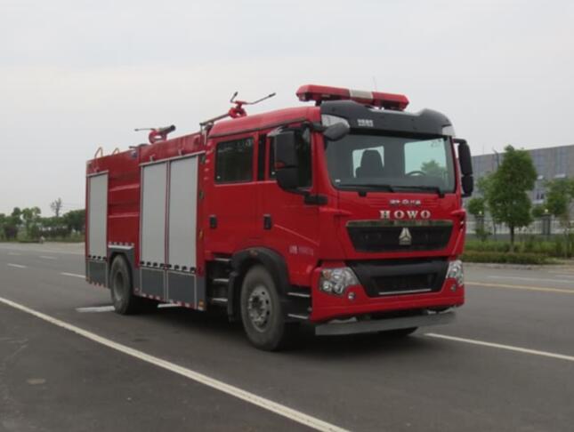 JDF5190GXFGP70/Z型干粉泡沫聯用消防車,采用重汽豪沃ZZ5207TXFV471GE5底盤改裝而成。整車由消防員乘員室和車身兩大部分組成,乘員室為原裝雙排,可乘坐2+4人,該車為外露罐結構,車身前部為器材箱(干粉罐,氮氣瓶,干粉系統),中部為水罐,后部為泵房。載液罐體為優質碳鋼,內部噴涂環氧底漆及環氧瀝青漆,與底盤采用彈性連接,載水2800kg,泡沫液量1900kg,裝備了CB10/60型常壓消防泵,額定流量60L/S,車頂安裝成都威斯特消防機械有限公司生產的PL48型車用消防炮和PF30干粉炮。該車最大的特點是載液量大、操控性好、維修簡便。可廣泛應用于公安消防隊、廠礦企業及社區、碼頭等場所,撲救大型油類火災和一般物質火災。 整車消防性能符合GB7956-2014標準要求;底盤通過國家強制性產品認證;發動機排放符合GB17691-2005第五階段限值的規定要求(國Ⅴ標準);整車通過國家消防裝備質量監督檢驗中心檢測(報告編號:Zb201631223/24)并已列入工信部汽車新產品公告,CCCF已申報。詳情請咨詢廠家銷售:13997888036,0722-3808778董經理