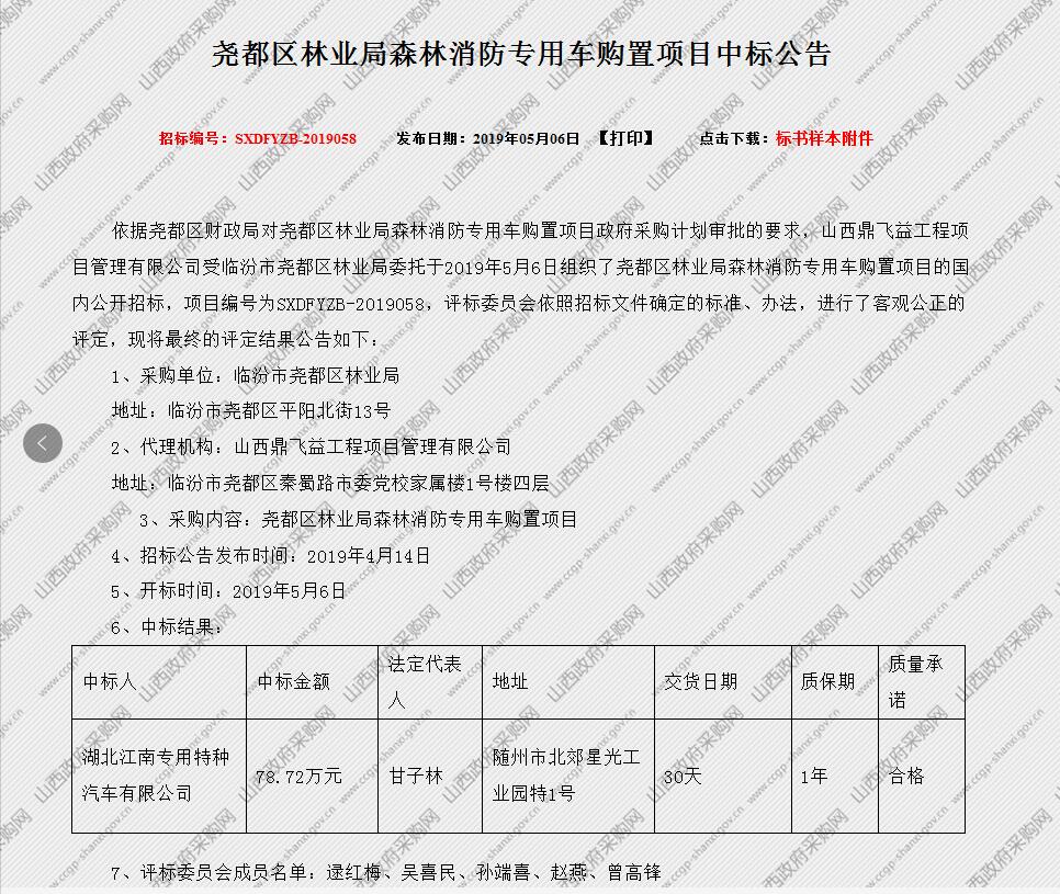 以下是森林消防水車的中標(biāo)公告截圖及鏈接:http://www.ccgp-shanxi.gov.cn/view.php?nid=517748