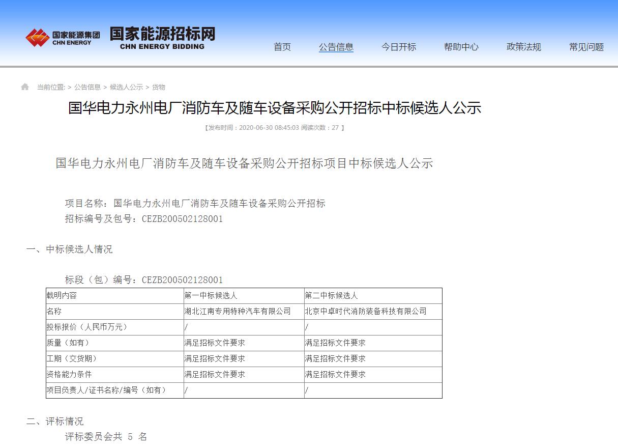 國(guó)華電力永州電廠消防車及隨車設(shè)備采購(gòu)我公司成功中標(biāo)13997888036
